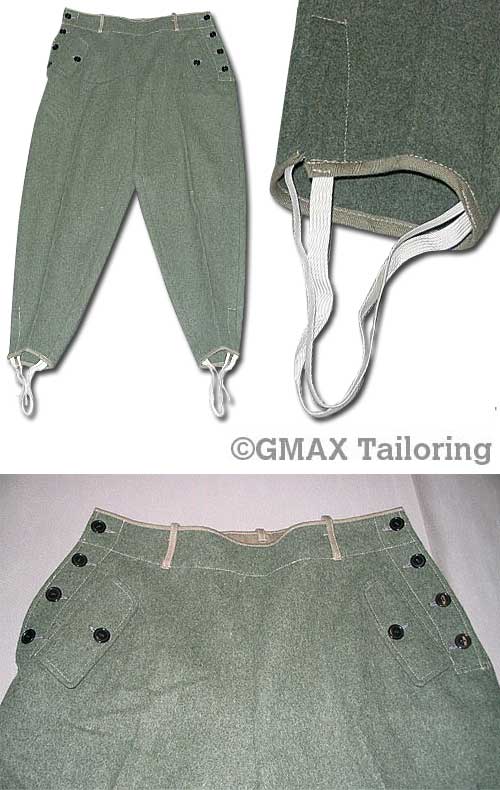 One of our customers, sent us original Italian zeltbahn material, with whch we made a set of Hosen from. Worn by Heer and Waffen-SS units after cloth captured from the capitulating Italians. We can make fieldjackets, caps and trousers (Panzer and regular style), out of Italian cloth, or any supplied cloth, please contact us for more information.