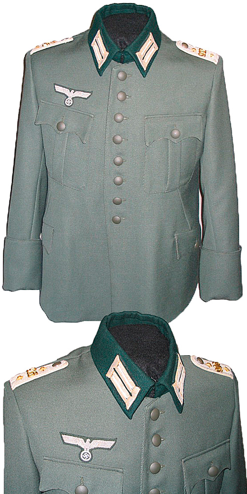 Classic Reichswehre styled Officer's jacket. The custom supplied European-made Trikot for this product. The reverse of the jacket has the 'Austrian' styling, with the scallopped back and cut. Insignia supplied by the client.